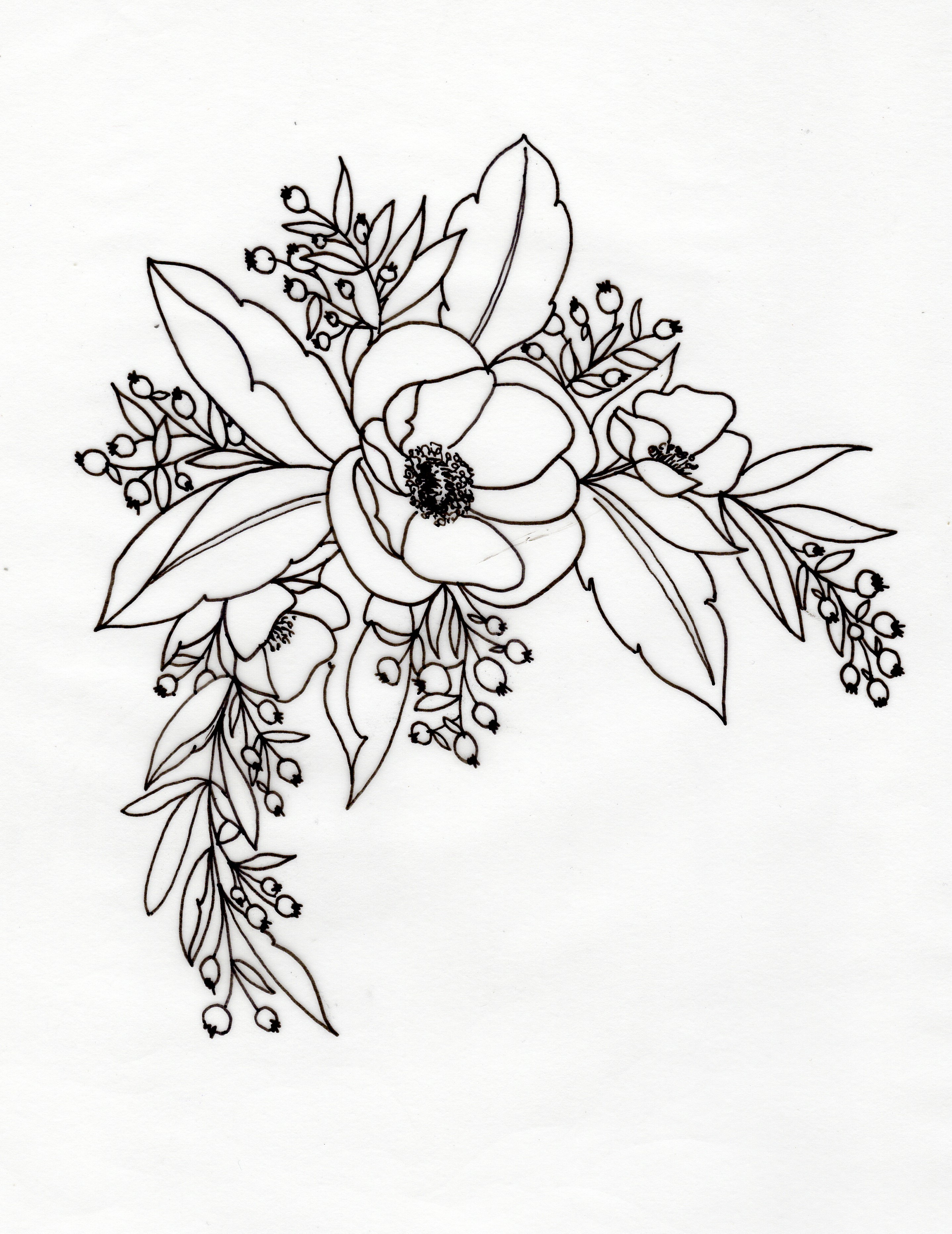 Floral wreath sketch to post processing